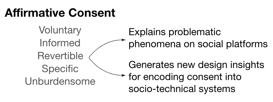 I lead the Real-world Interactions and Systems for Change (RISC) Group, where we develop digital systems that give users more agency over their online interpersonal interactions and data. Currently, we focus on designing and building social media and AI systems that center the consent of users—who often hold less power than system creators. Consent is fundamentally about ensuring individuals—especially those who tend to be vulnerable—have full agency to decide whether and how an interaction should occur. I research these topics because I believe they are important for creating positive social change (hence, my group name).